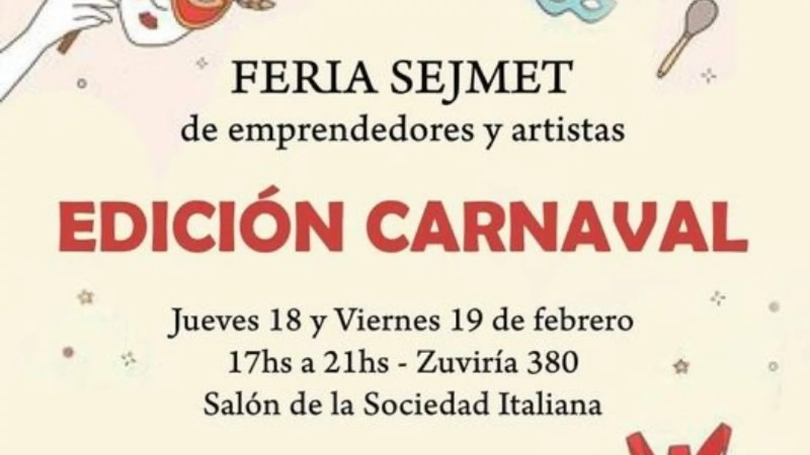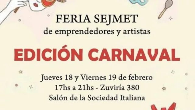Hoy jueves 18 y mañana viernes 19, de 17 a 21 hs. en el Salón de la Sociedad Italiana se llevará a cabo la Feria de Carnaval de SEJMET.