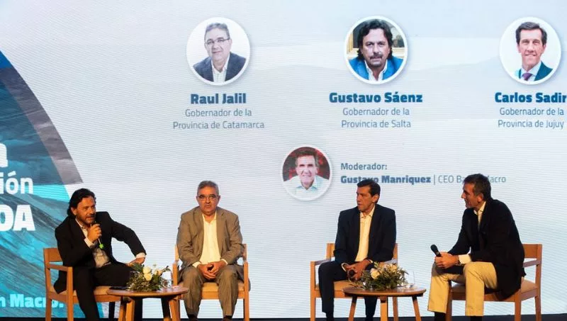 Ante un auditorio de más de 250 empresarios y referentes de la minería, el gobernador Gustavo Sáenz disertó en Catamarca en la 3° conferencia anual “Pensar la minería en grande”, evento organizado por el banco Macro. Junto a los gobernadores Raúl Jalil de Catamarca y Carlos Sadir de Jujuy, Sáenz -que preside de la Mesa de Litio-, integró el panel “Minería: Una Oportunidad Histórica para la Región del Noa”.