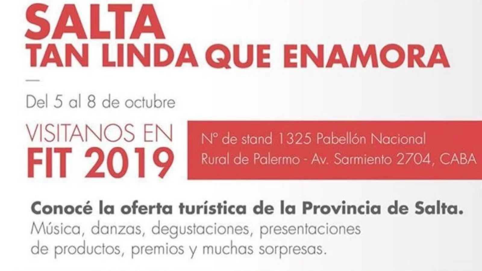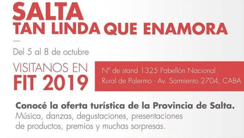 De cara a las vacaciones de verano, Salta difundirá su oferta turística y cultural en una nueva edición de la Feria Internacional del Turismo que se llevará adelante desde el sábado 5 de octubre en la Rural de Palermo. La comitiva estará integrada por 29 empresas del sector privado, entre ellos hoteles, rentadoras de autos, agencias de viaje y peñas. A ellos se suman la Cámara Hotelera, Gastronómica y Afines de Salta y la Cámara de Turismo de San Lorenzo.