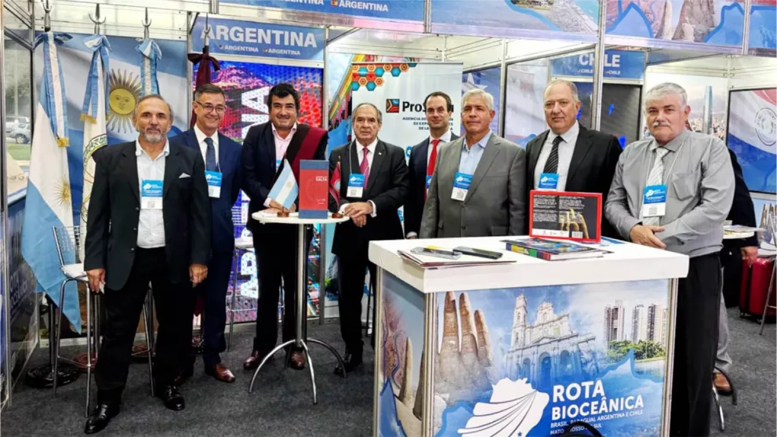 El ministro de Producción y Desarrollo Sustentable, Martín de los Ríos, y el representante de Relaciones Internacionales, Julio San Millán, encabezaron la comitiva salteña que viajó la semana pasada a la ciudad de Campo Grande capital de Mato Grosso do Sul, Brasil, para participar en el Seminario Internacional de la Ruta Bioceánica y el 6° Foro de los Gobiernos Subnacionales del Corredor Bioceánico de Capricornio.