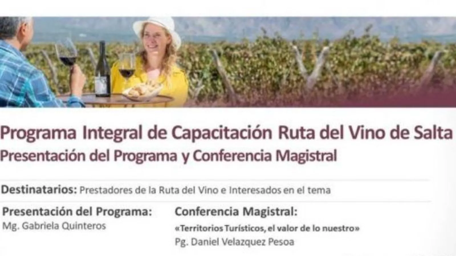 El Programa de Capacitación Integral Ruta del Vino Salta, se desarrollará con modalidad virtual y gratuita. Su objetivo es fortalecer y consolidar la Ruta del Vino de Salta como producto turístico sostenible a través de un proceso formativo.