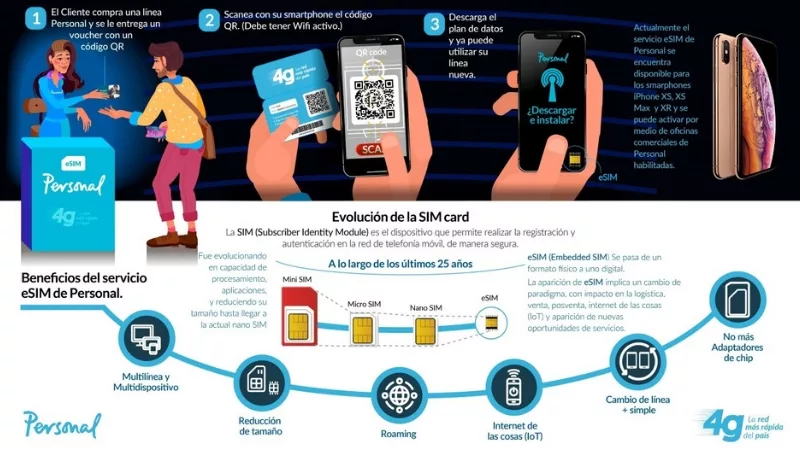 La nueva eSIM, a diferencia de las SIM convencionales, no requiere la inserción de un chip físico en el smartphone. El cliente de Personal sólo debe obtener el voucher con el código QR en las principales oficinas comerciales de Personal, escanearlo con su dispositivo móvil y descargar el plan de datos para comenzar a utilizar su línea.