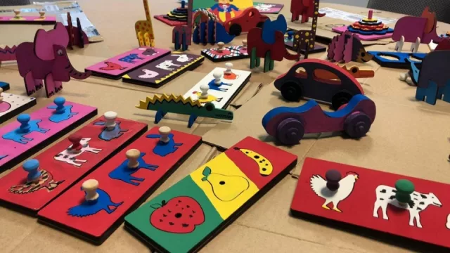 Los voluntarios de la Fundación Sí llevaron juguetes de madera y pintura para que los colaboradores puedan colorearlos.