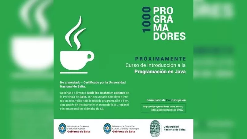 La Universidad Nacional de Salta y el Gobierno de la Provincia abrieron las preinscripciones del curso de “Introducción a la programación en Java”. El cupo de esta nueva edición será para mil estudiantes.