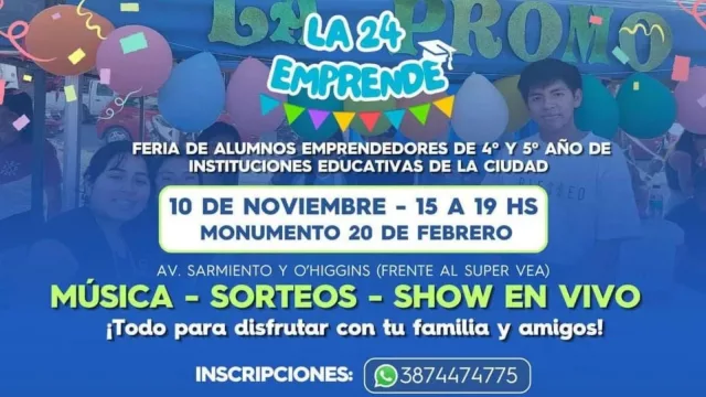 Este domingo 10 la Municipalidad realizará la segunda edición de la feria “La 24 emprende”. El objetivo es acompañar a los estudiantes de las instituciones públicas y privadas a juntar los fondos para la cena e indumentaria de egresados.