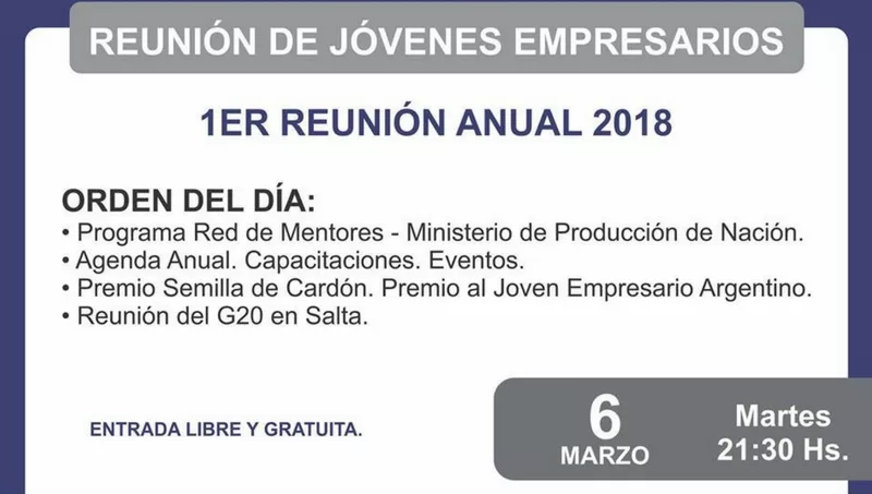 Arrancó marzo y la mayoría de las instituciones empresarias del medio comenzaron a retomar a plano su actividad, luego de las vacaciones de verano. Hoy será el turno de la Comisión de Jóvenes Empresarios de la Cámara de Comercio e Industria de Salta, agrupación que en los últimos años viene registrando un fuerte crecimiento de la mano de una generación de jóvenes emprendedores inquietos y comprometidos.