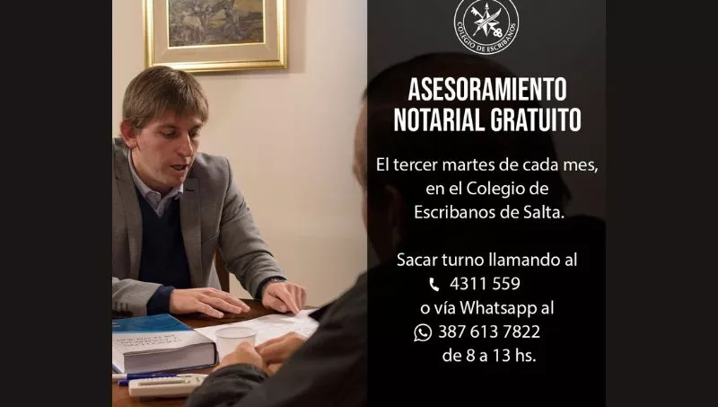 El martes de la próxima semana se hará la jornada de asesoramiento gratuito que todos los meses lleva adelante el Colegio de Escribanos de Salta. La iniciativa de responsabilidad social se realizará hasta octubre.