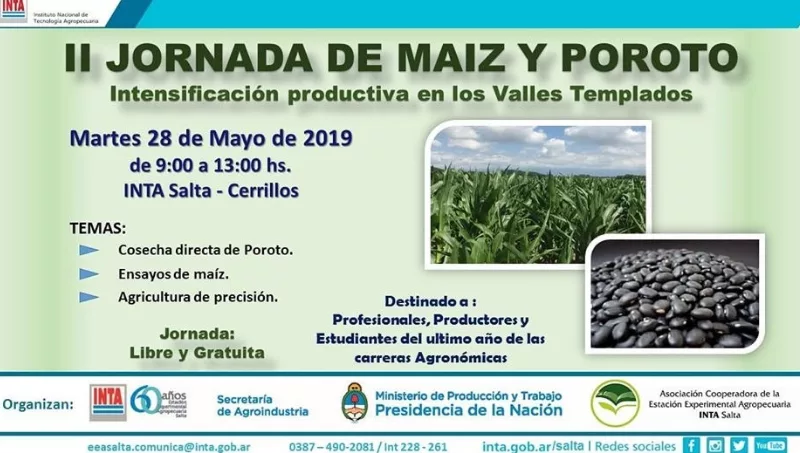 El maíz y el poroto son dos de las principales producciones de Salta, por lo que la actualización técnica de ambas es clave para sostener la productividad. Por ello, el próximo martes 28 de 9 a 13, se llevará a cabo en las instalaciones del INTA en Cerrillos la II Jornada de Maíz y Poroto, convocada bajo el lema “Intensificación productiva en los Valles Templados”.