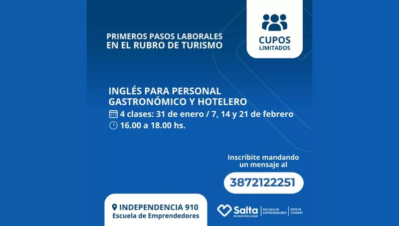 En el marco de los talleres de verano que ofrece la Municipalidad de Salta a partir de hoy se llevarán a cabo una serie de clases destinadas a personas que tienen su empleo en turismo.