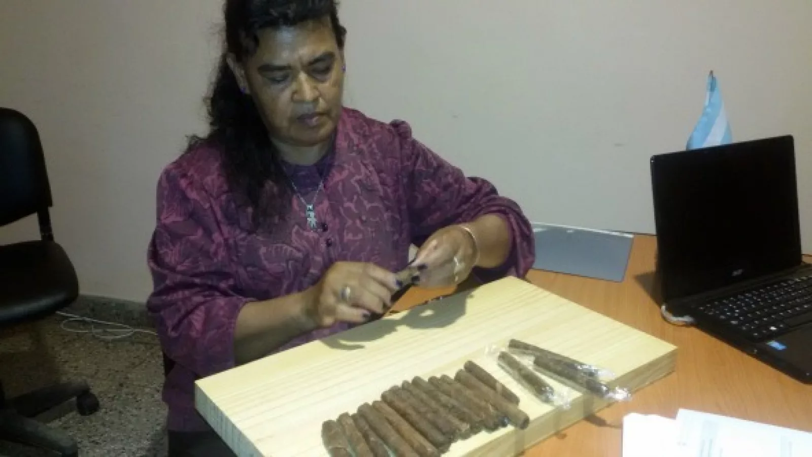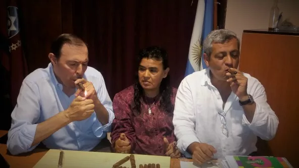 Los primeros habanos producidos por Delia, con tabaco criollo y almacenado durante dos años en el INTA, fueron degustados por el interventor de Coronel Moldes, Rodolfo Antonelli, y el Jefe de Gabinete, Raúl Cansina, quienes elogiaron el trabajo de la artesana.