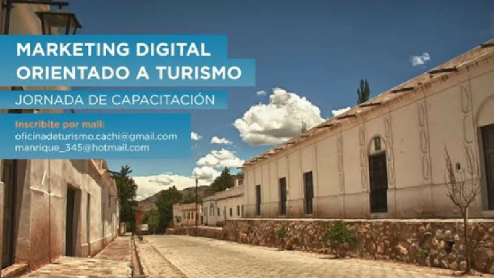 Con el objetivo de fomentar la actividad turística de la zona, mañana viernes de 10 a 17 se realizará en el Salón Municipal de la localidad de Cachi la jornada de capacitación “Marketing Digital orientado a Turismo”. La iniciativa, enmarcada en el Plan Nacional de Inclusión Digital, es impulsada por los ministerios nacionales de Modernización, Turismo y Producción, con el apoyo del Ministerio de Cultura, Turismo y Deportes de la Provincia y la Municipalidad de Cachi.