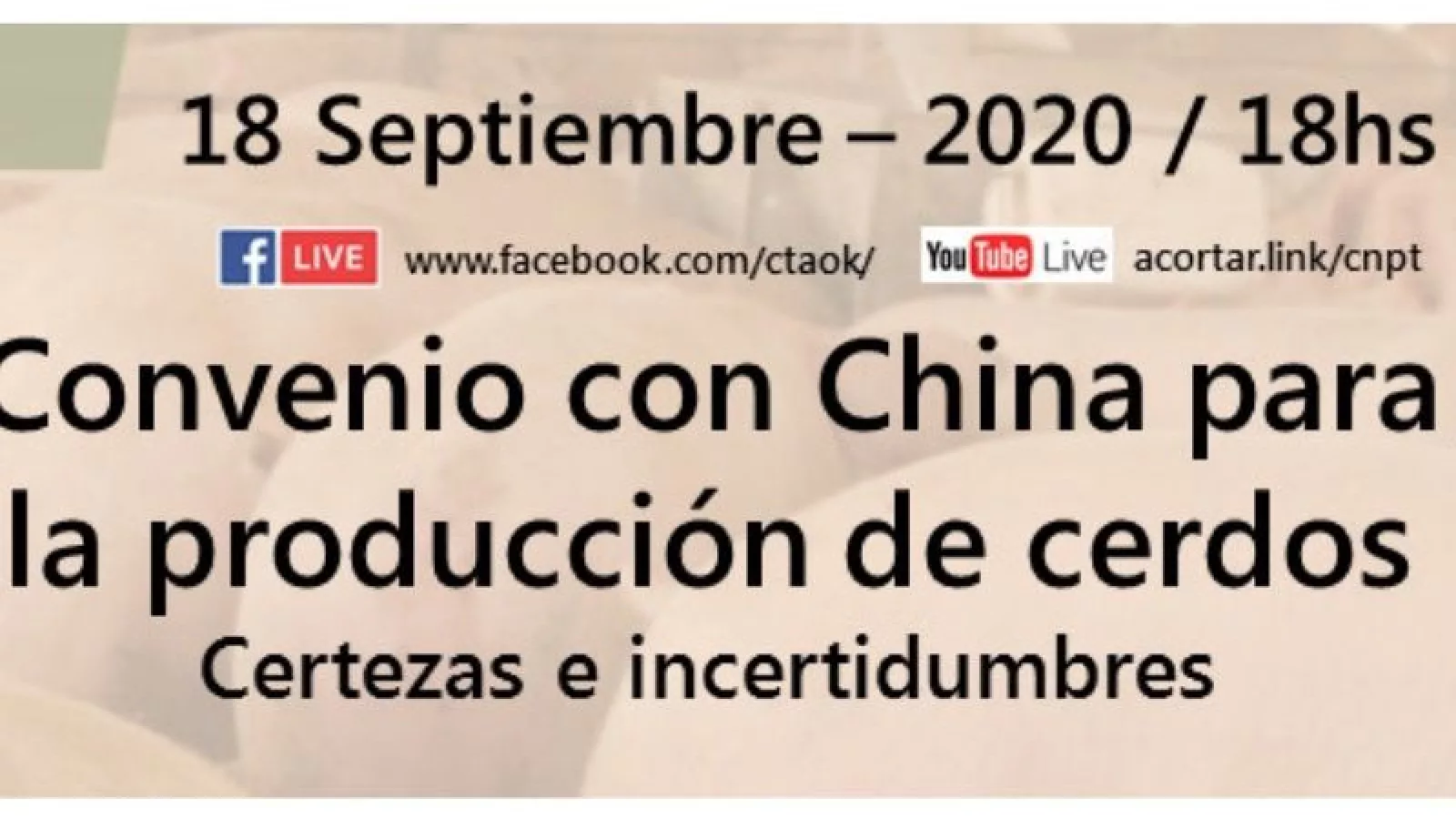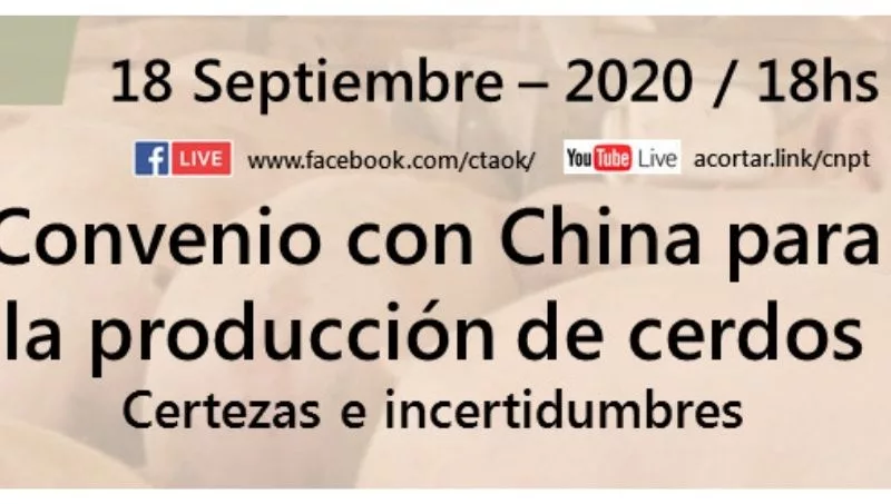 El próximo viernes 18 de septiembre se realizará una videoconferencia titulada “Convenio con China para la producción de cerdos, certezas e incertidumbres”, en la que se abordará el polémico proyecto del país oriental que contempla inversiones hasta por 3.500 millones de dólares y busca construir 25 granjas y frigoríficos en Argentina para la cría de cerdos, destinados íntegramente al mercado chino.
