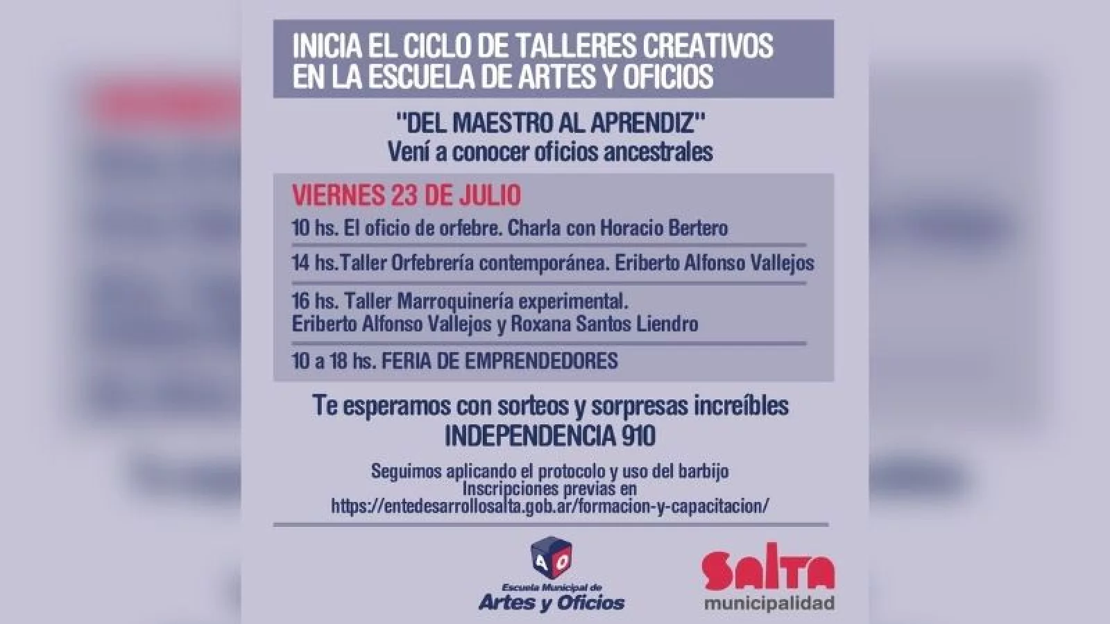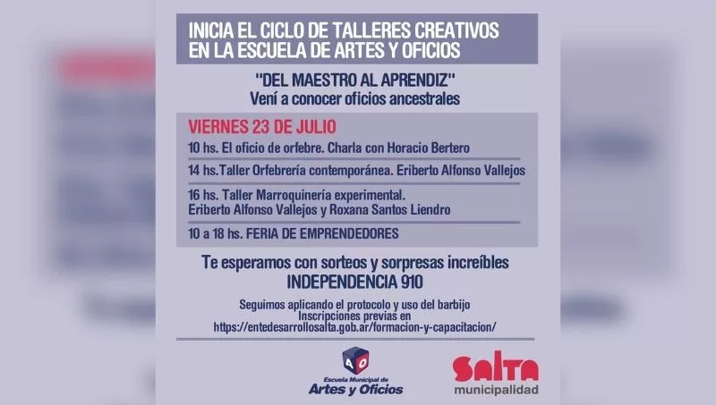 Con el objetivo de difundir distintos oficios, tanto tradicionales como de última generación, la Municipalidad de Salta, a través del Ente de Desarrollo Económico, desarrollará diversas actividades desde este viernes 23.