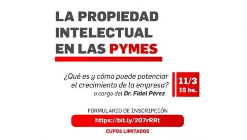 El próximo jueves 11 de este mes a las 15 se llevará a cabo la charla “La propiedad intelectual en las pymes: Qué es y cómo puede potenciar el crecimiento de la empresa". La jornada es virtual y se realizará en la plataforma Meet.