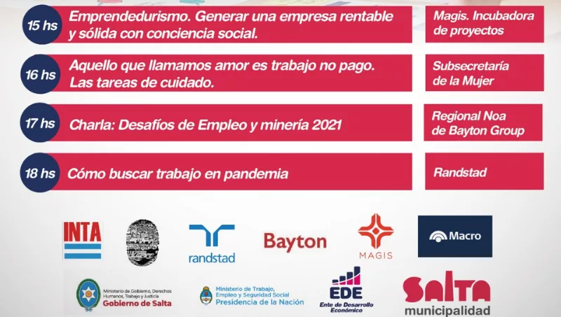A las 18 será la disertación “Cómo buscar trabajo en pandemia”. La charla aportará tips y estrategias para mejorar la búsqueda de empleo en un contexto adverso; la correcta presentación de currículum. Estará a cargo de personal del equipo de Randstad.