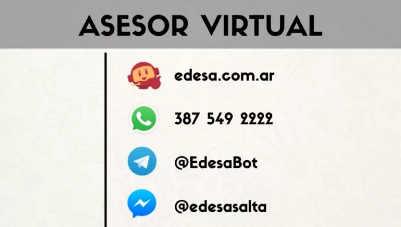 - Asesor Virtual de Facebook Messenger: usuario @edesasalta