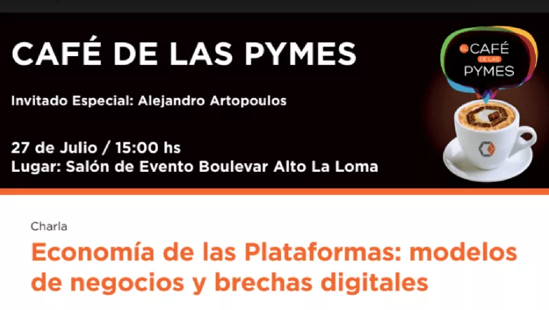El Café de las Pymes, la propuesta de la Cámara Pyme de Salta para que los pequeños y medianos empresarios locales tengan un espacio de encuentro y capacitación, tendrá el próximo viernes una atractiva charla titulada “Economía de las Plataformas: modelos de negocios y brechas digitales”.