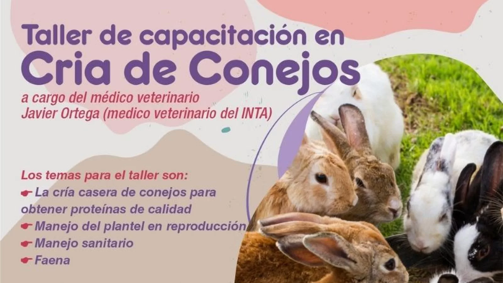 La formación estará a cargo del médico veterinario del INTA, Javier Ortega. Entre los temas a desarrollar se avanzará sobre la cría casera de conejos para obtener proteínas de calidad, el manejo del plantel en reproducción, los cuidados sanitarios y la faena.