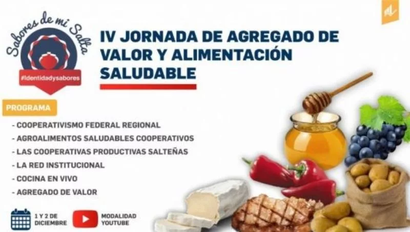 El martes 1 y miércoles 2 de diciembre se desarrollará la 4° Jornada de Agregado de Valor y Alimentación Saludable. El evento organizado por el programa Identidad y Sabores de mi Salta se transmitirá en vivo por el canal de YouTube del Ministerio de Producción y Desarrollo Sustentable. La actividad es libre y gratuita.