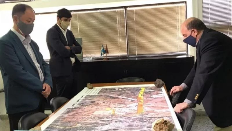 El director de Posco Argentina, Sung Kook Chung, junto a Vicente Arias, gerente de Legales, se reunieron con las autoridades del área de Minería de la provincia para informar los avances del proyecto de litio Sal de Oro que esta empresa minera de capitales coreanos lleva adelante en el Salar del Hombre Muerto.