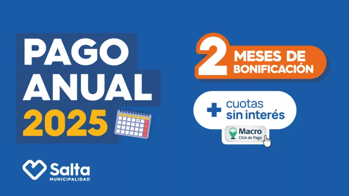 El sistema tributario municipal ya tiene liquidado el beneficio del pago anual, debiendo abonar 8 meses; y en caso del pago semestral ya está liquidado con el 50% de descuento de junio. El pago lo podrán realizar desde la página de Rentas, la app Muni Salta, de forma presencial o cualquiera de los agentes de cobro autorizados.