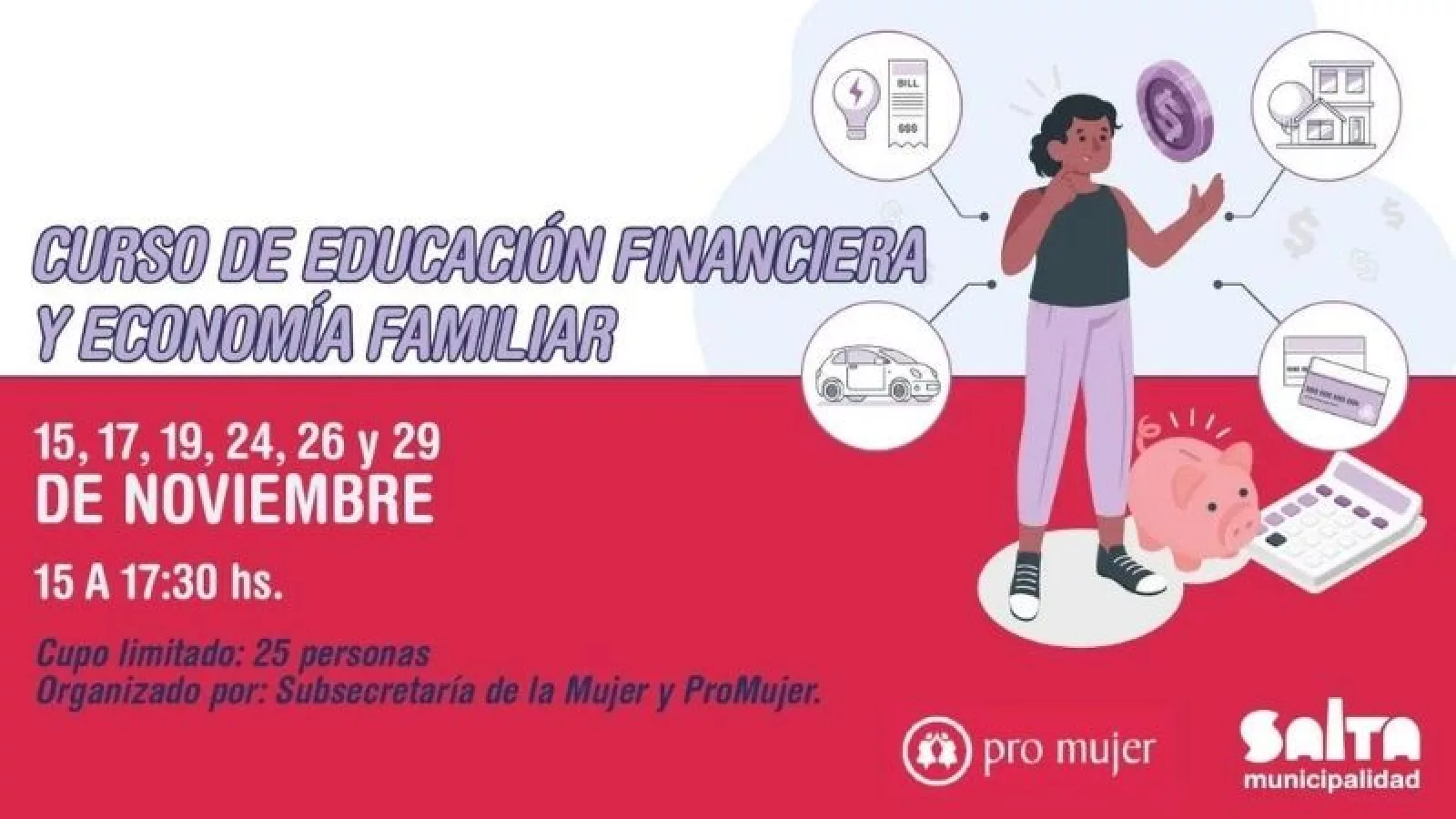 La Secretaria de Desarrollo Humano de la Municipalidad de Salta, a través de la Subsecretaria de la Mujer y Pro Mujer invita a los vecinos de la zona Sudeste a participar del curso de Educación Financiera y Economía Familiar. El mismo inició ayer lunes 15, y seguirá mañana miércoles 17, viernes 19, miércoles 24, viernes 26 y lunes 19 de noviembre de 15 a 17:30 en las instalaciones del Centro Integrador Comunitario CIC de barrio Santa Cecilia.