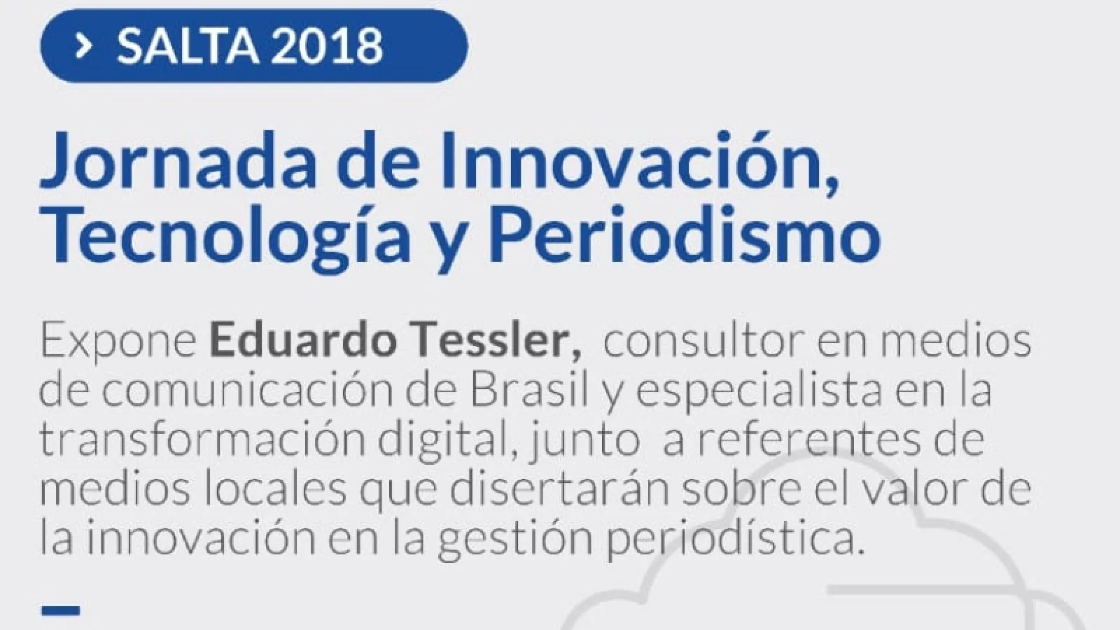 La conferencia se llevará a cabo en el Hotel Desing Suites, en el Salón Güemes, y tendrá como principal disertante consultor y especialista en transformación digital brasileño Eduardo Tessler, quien abordará el valor de la innovación en la gestión periodística. La jornada contará con la participación de referentes de medios locales, quienes tratarán temáticas similares.