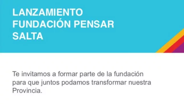 La Fundación Pensar, que desde sus comienzos actúa como un “think tank” del PRO, lanzará hoy su filial en Salta. Será a partir de las 18 en los salones del Copaipa, en General Güemes 538. Estarán presentes la presidenta de la Fundación Pensar y diputada nacional, Carmen Polledo; junto al senador y presidente provisional del Senado, Federico Pinedo.