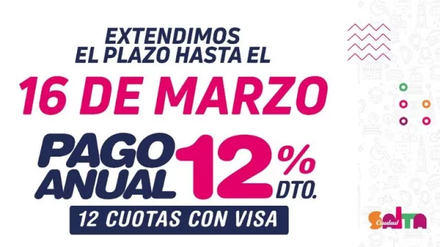 Los vecinos de Salta tienen tiempo hasta el 16 de marzo para adherirse al pago anual de tributos municipales con un descuento del 12%, en 12 cuotas con tarjeta Visa.