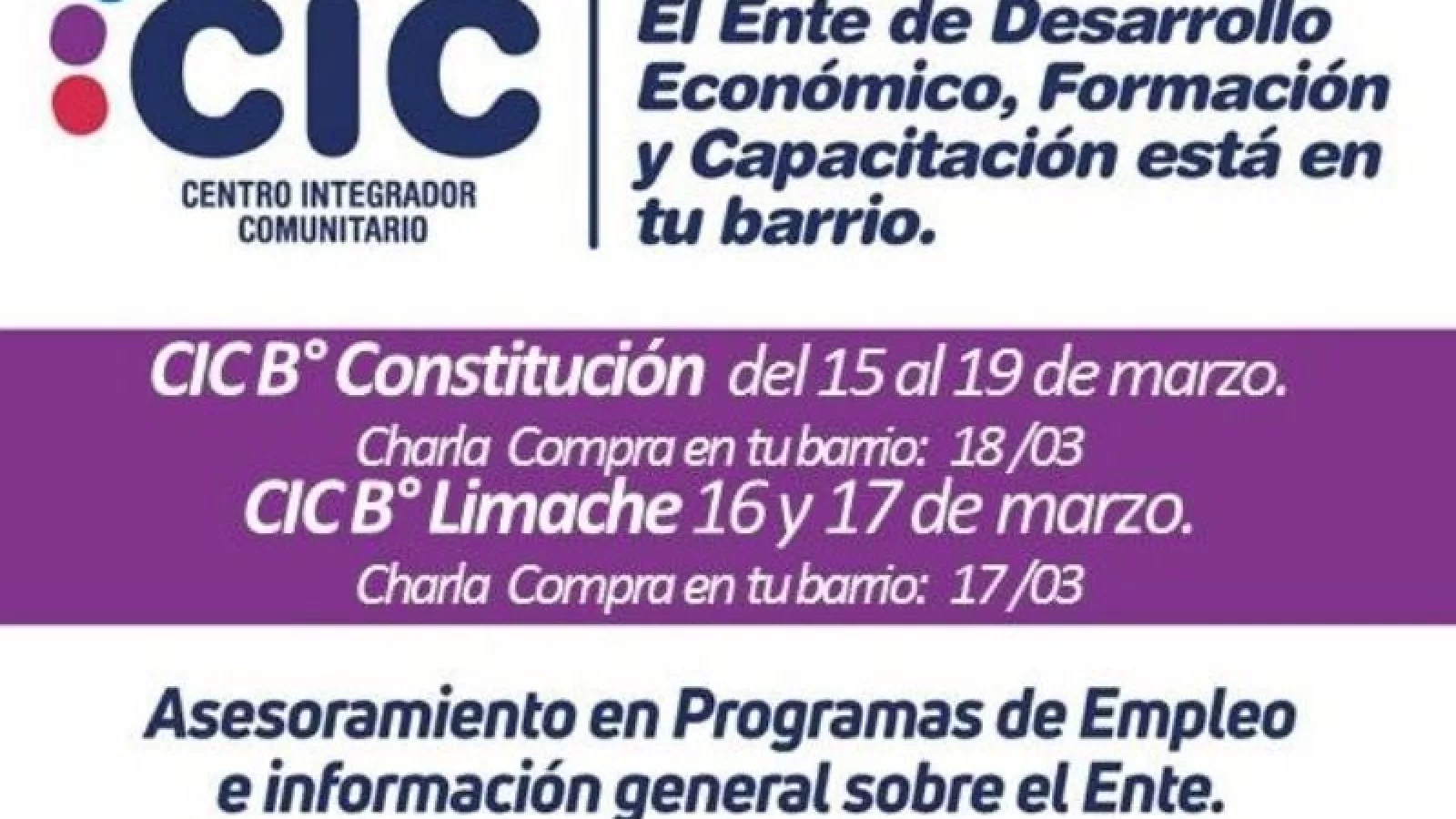 El miércoles 17 de marzo se realizará el primer encuentro en el CIC de barrio Limache, a las 9 de la mañana, y el 18 de marzo a las 10 se concretará en el CIC de barrio Constitución.