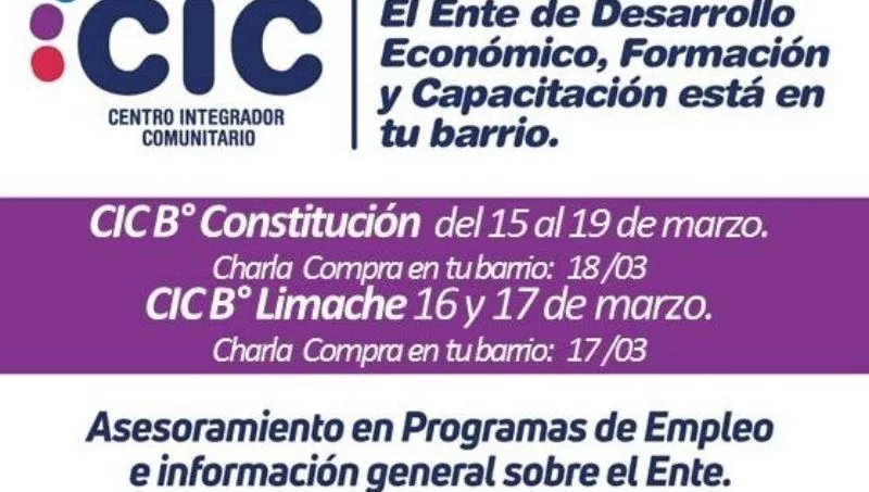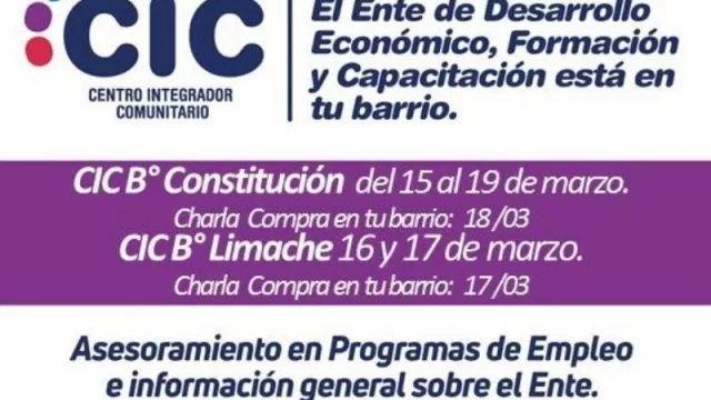 Los interesados en participar de las charlas deben inscribirse previamente con el personal del Ente que estará en los respectivos CICs desde el lunes, en el horario de 8 a 14.