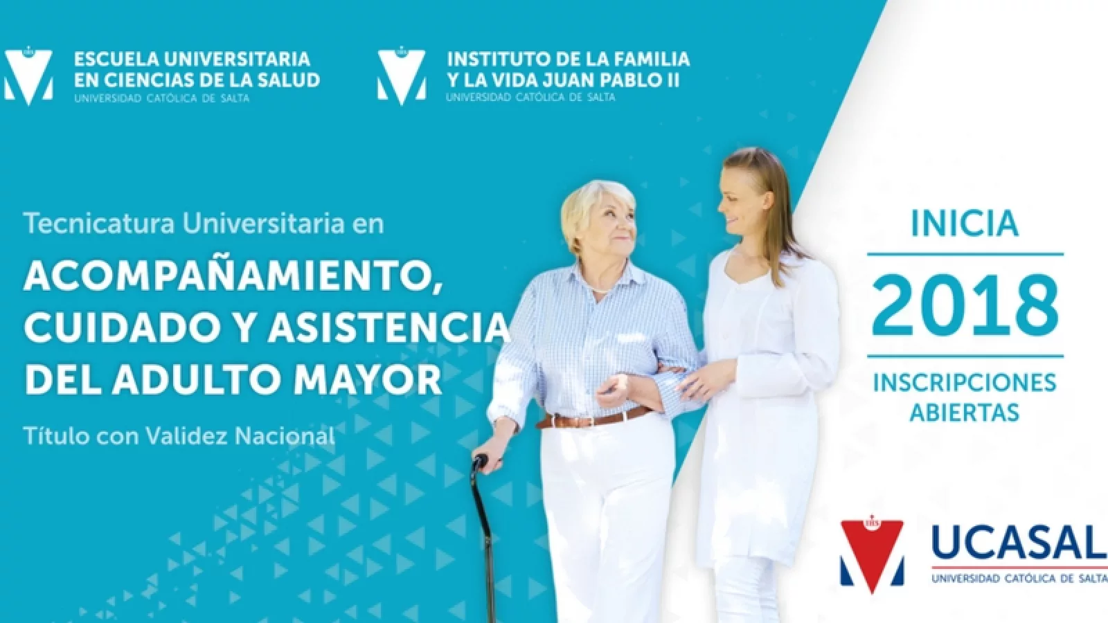 A partir del año próximo la Universidad Católica de Salta brindará una nueva carrera en el marco de su Escuela Universitaria de Ciencias de la Salud. Se trata de la "Tecnicatura Universitaria en acompañamiento, cuidado y asistencia del adulto mayor". Al haber finalizado el programa de estudios, los egresados serán capaces de acompañar, cuidar y asistir a la persona en su proceso de envejecimiento. También podrán reconocer las características psicosociales de la vejez y desarrollar técnicas de promoción para un envejecimiento positivo.