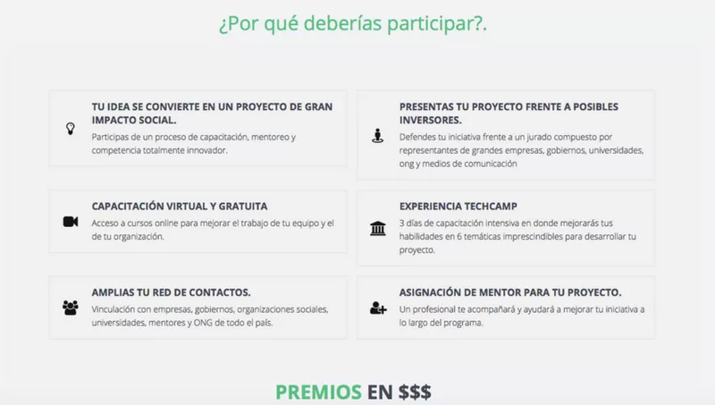 En la competencia pueden participar todas las organizaciones sociales del país y/o a cualquier persona (estudiante, investigador, profesional, emprendedor) que tenga una idea innovadora para la solución de problemas sociales existentes.