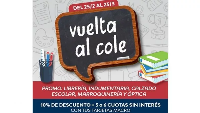Más de 120 comercios de la provincia adhirieron a Vuelta al Cole 2022, promoción que estará vigente hasta el 25 de este mes y brinda la posibilidad de comprar en 3 o 6 cuotas sin interés y con un 10% de reintegro con las tarjetas de crédito del Banco Macro (Visa, Master y Amex), en los rubros de librería, indumentaria, calzado escolar, marroquinería y óptica.
