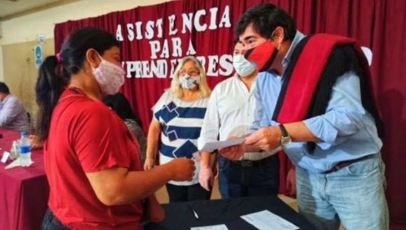 En esta oportunidad, el equipo de trabajo de la Municipalidad de Pichanal, colabora asesorando a los beneficiarios para que accedan a una cuenta bancaria y puedan firmar la documentación correspondiente.