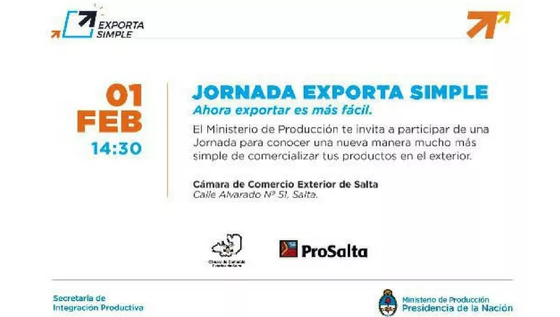 ¿Tenés una pyme y el sueño de exportar siempre estuvo fuera de tus posibilidades? Entonces tenés que ir hoy a las 15 a la sede de la Cámara de Comercio Exterio de Salta, en Alvarado 51. Allí se presentará el nuevo régimen de exportación simplificada “Exporta Simple”, diseñado para facilitar a los pequeños productores las operaciones de exportación a través de prestadores de servicio postal.