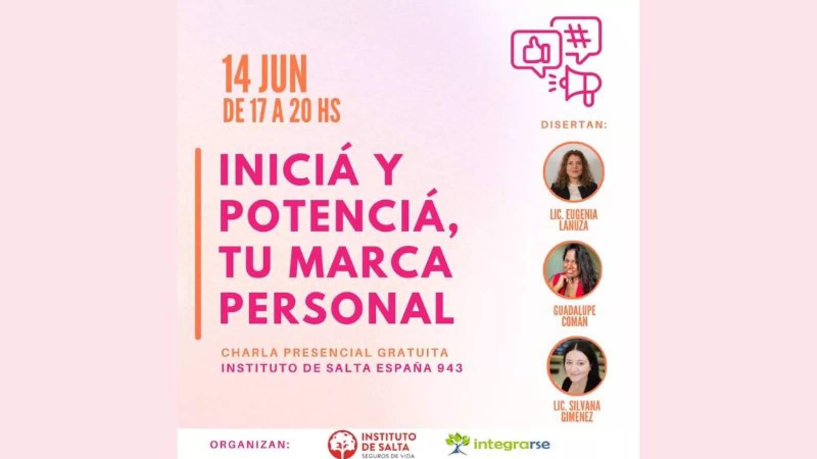 "Inicia y potencia tu marca personal" es el título de una charla gratuita que se dictará mañana viernes 14, de 17 a 20, en el Instituto de Salta, en España 943. La charla está pensada para ayudar a las personas a desarrollar su marca personal y destacarse en su ámbito profesional.