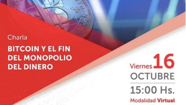 El próximo viernes 16 de octubre se realizará la charla virtual “Bitcoin y el fin del monopolio del dinero”. En esta actividad gratuita, organizada por la Universidad Católica de Salta, se tratará la irrupción del bitcoin en el mercado y su importancia como reserva de valor, medio de pago, transferencias e inversión.