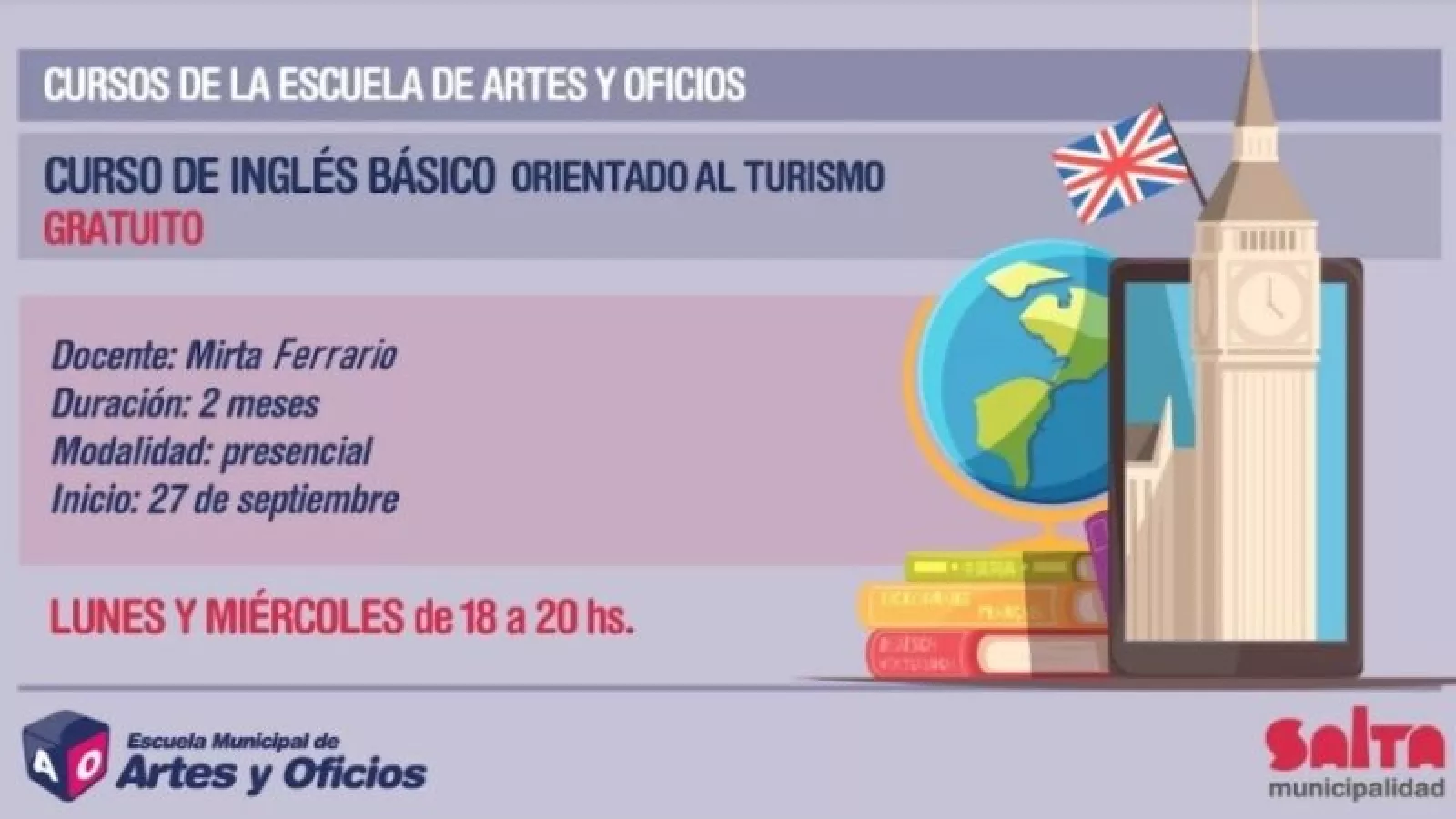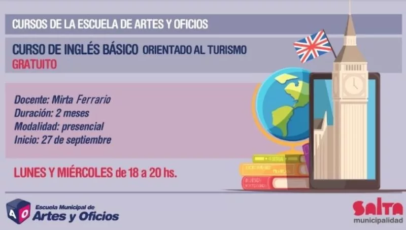 La Municipalidad de la ciudad de Salta abre inscripciones para el curso presencial de Inglés básico orientado al turismo.