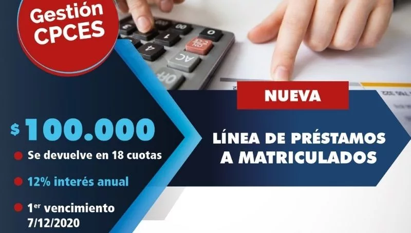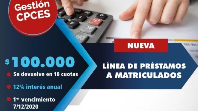 El Consejo Profesional de Ciencias Económicas de Salta ofrece una nueva línea de 50 préstamos, con una tasa de interés anual del 12% y un plazo de devolución de 1 año y medio.