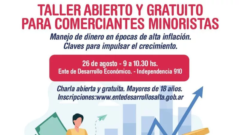 Los vecinos de la ciudad de Salta están invitados a participar en el taller gratuito organizado para comerciantes minoristas. Se dictará mañana de 9 a 10.30, en Independencia 910, organizado por el Ente de Desarrollo Económico de la comuna capitalina.