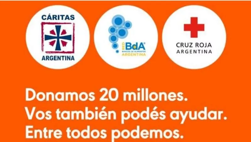 Naranja se suma a los donativos para fomentar la lucha contra el coronavirus en la Argentina y destinará 20 millones de pesos en partes iguales a Cáritas Argentina, Red Argentina de Bancos de Alimentos y Cruz Roja Argentina.