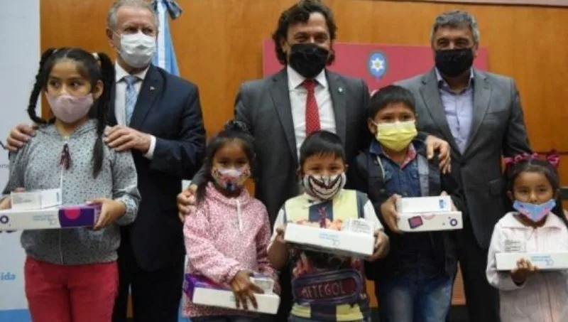 De manera simbólica recibieron el equipamiento, chicos de la fundación Nicolás Avellaneda. Las tarjetas telefónicas se entregarán a 40 familias del interior que están en el programa hospitalizados y hoy se encuentran en albergue para poder acompañar a sus familiares. También a 1500 familias aborígenes del programa Unir y 5000 familias del programa de Fortalecimiento Familiar de la Secretaría de Niñez.
