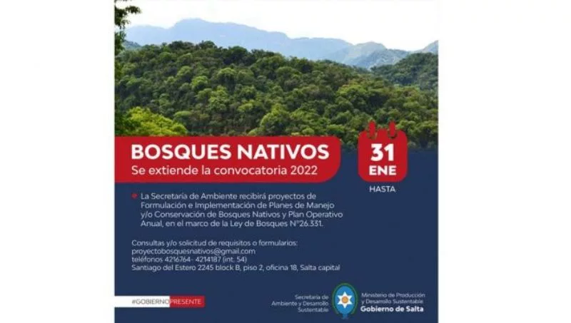 La Dirección General de Planificación Territorial recibirá las iniciativas hasta el 31 de enero de 2023. Superadas las etapas de evaluación, los proyectos presentados serán financiados a través del Fondo Nacional para el Enriquecimiento y Conservación de los Bosques Nativos cuyo aporte es no reintegrable.
